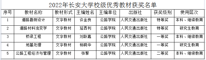近日,学校发布了《关于获评2022年长永利集团304am登录优秀教及拟推荐参评2022年陕西高等教育优秀教材名单的公示》,永利集团官网5部教材获特等奖2项、一等奖2项、二等奖1项,其中获得特等奖和一等奖的4部教材被推荐参评陕西高等教育优秀教材。