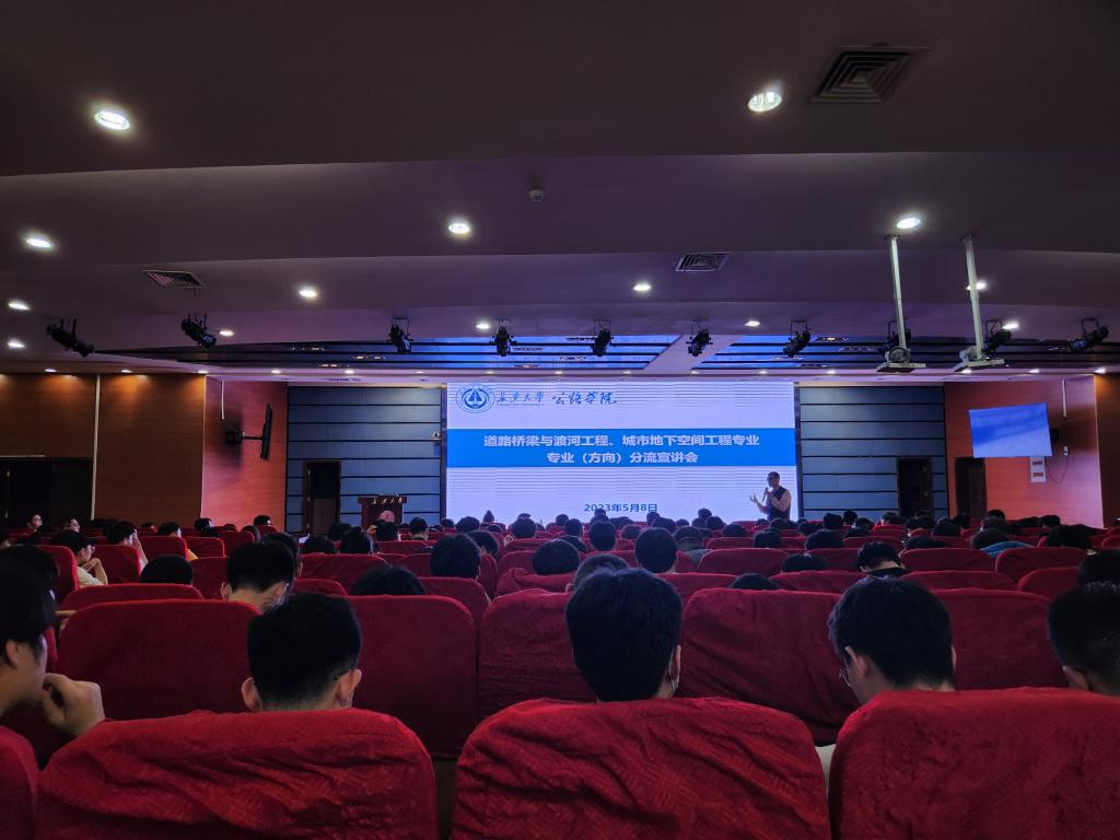 2023年5月8日晚7:00,在北辰会议中心学术报告厅,永利集团官网顺利召开2021级道路桥梁与渡河工程、城市地下空间工程专业分流宣讲会议,隧道工程系主任罗彦斌、道路工程系副主任张洪亮、桥梁工程系副主任陈峰、机场工程系主任栗培龙、岩土工程系副主任张宏光、城市轨道工程系副主任张景峰、教学秘书张晔、学生辅导员及教务管理人员参加了此次宣讲,会议由张晔主持。