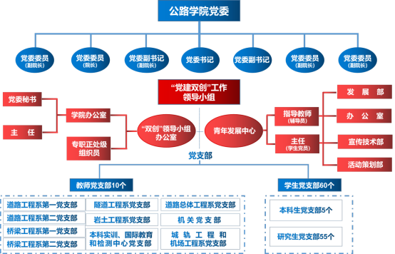 近年来,学院通过陕西省党建工作标杆院系验收,先后获评陕西省高校先进基层党组织、陕西省高等教育师德建设示范团队、全国教材先进集体、陕西省科教文卫系统模范小家;在学校党组织书记抓党建工作述职评议考核中连年获“好”等次。多名师生获评省部级以上荣誉,其中公路工程、隧道工程教师团队先后获批“全国高校黄大年式教师团队”,沙爱民教授荣获“全国创新争先奖”、标准科技创新奖“标准大师”称号,申爱琴教授荣获“全国模范教师”称号,陈建勋教授被评为陕西省高校优秀共产党员、陕西省先进工作者,顾安全教授荣获中国交通教育终身成就奖。学院主持教育部供需对接就业育人项目2项,发展包括国家级青年人才罗彦斌等教师党员5名,在高层次人才和青年教师中发展党员工作成效突出。