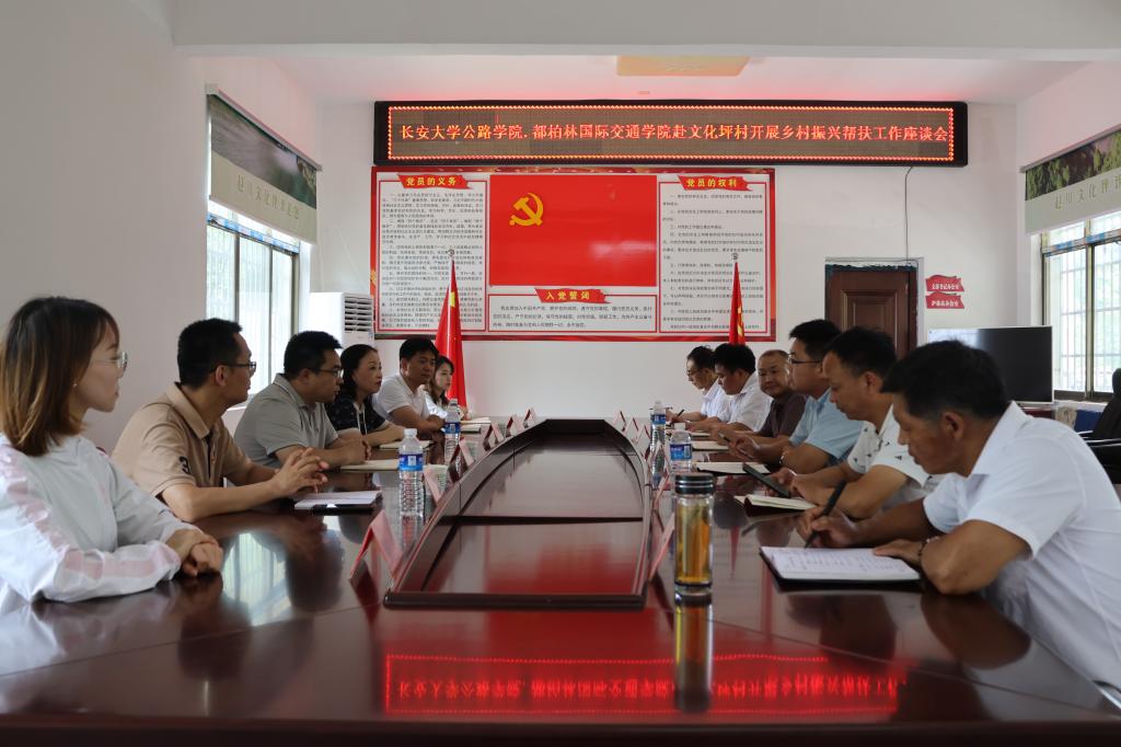随后,双方在文化坪村党群活动中心开展座谈。黄青向永利集团304am登录和长安都柏林国际交通学院多年来对赵川镇的帮扶与支持表示衷心感谢,就赵川镇目前的建设发展向与会人员进行介绍。黄开峰回顾了长期以来两院对文化坪村的帮扶措施,介绍了村里近年来的显著发展变化,就村中特色产业下一步发展、中药材种植、生态旅游业开发等方面同与会人员交流探讨。