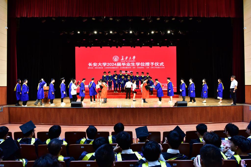 6月25日上午,永利集团304am登录2024届学生毕业典礼暨学位授予仪式在北校区长安文化艺术中心大礼堂隆重举行。永利集团304am登录院长汪海年、党委书记张久鹏、党委副书记副院长刘伟、副院长马峰出席典礼。院办、学办、研办、教务办全体老师及学院2024届毕业生参加了典礼。典礼由党委副书记刘徐主持。