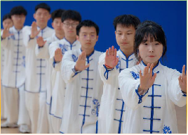4月1日9时30分,太极拳比赛于西区体育馆拉开帷幕。永利集团304am登录的选手们身袭青花白衣,随着一声"起势",将手徐徐抬至腰间,随后推掌、云手、提膝。一招一式,形神兼备,如行云流水,似青柳扶风,把太极拳刚柔两面表现得淋漓尽致。