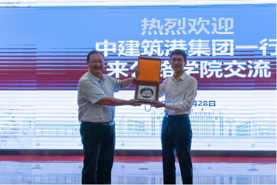 刘徐代表学院对中建筑港集团一行来访交流表示热烈欢迎,并赠送纪念品。