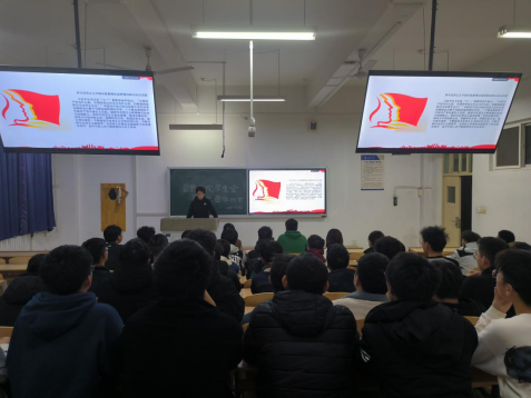 在活动的最后,张骥先介绍了马克思主义中国化最新理论成果推动伟大社会实践的成果,让同学们深刻认识到中国共产党从诞生之日起,就把马克思主义鲜明地写在自己的旗帜上,坚持马克思主义基本原理,坚持实事求是,始终从中国实际出发,洞察时代大势,把握历史主动,进行艰辛探索,不断推进马克思主义中国化时代化,不断开辟马克思主义新境界,为党和人民事业发展提供了科学理论指导,指导中国人民不断推进伟大社会革命。
