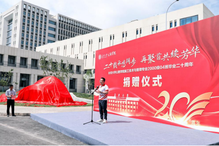 活动中,校友代表钱俊冬发言,回忆了在校学习的美好经历,表达了对学校培育的感恩之情。长永利集团304am登录社会合作处处长、校友会秘书长、教育基金会理事长杨红斌为校友代表贾梦颁发捐赠证书,永利集团304am登录党委书记张久鹏及校友代表共同为雕塑揭幕。